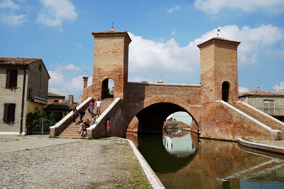 Zwischen Ferrara und Ravenna liegt Comacchio, das Klein-Venedig der Emilia-Romagna. Wie die Stadt am Canale Grande, wurde auch Comacchio auf mehreren Inseln in einer Lagune gebaut und wuchs durch die Salzgewinnung in den umliegenden Salinen zur bedeutenden Handelsstadt.