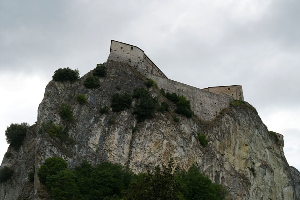 Eine tolle Alternative zum ganz schön überfüllten Zwergenstaat San Marino ist San Leo. Ebenfalls auf einem Bergsporn gelegen, mit eindrucksvoller Festung der Montefeltro und tollem Blick auf San Marino, über die Rolling Hills des Valmarecchia und bis zur Adriaküste. Bereits die Römer errichteten im 3. Jahrhundert v. Chr. eine Befestigungsanlage auf dem höchsten Punkt der Siedlung – schon damals war die unbezwingbar scheinende Lage Trumpf!