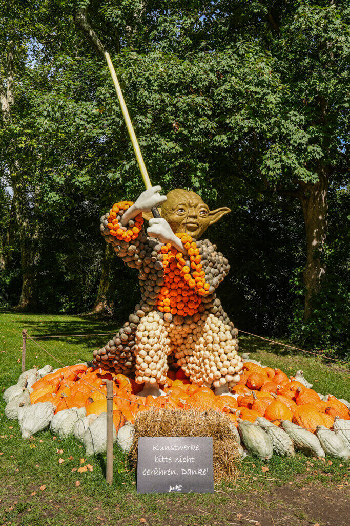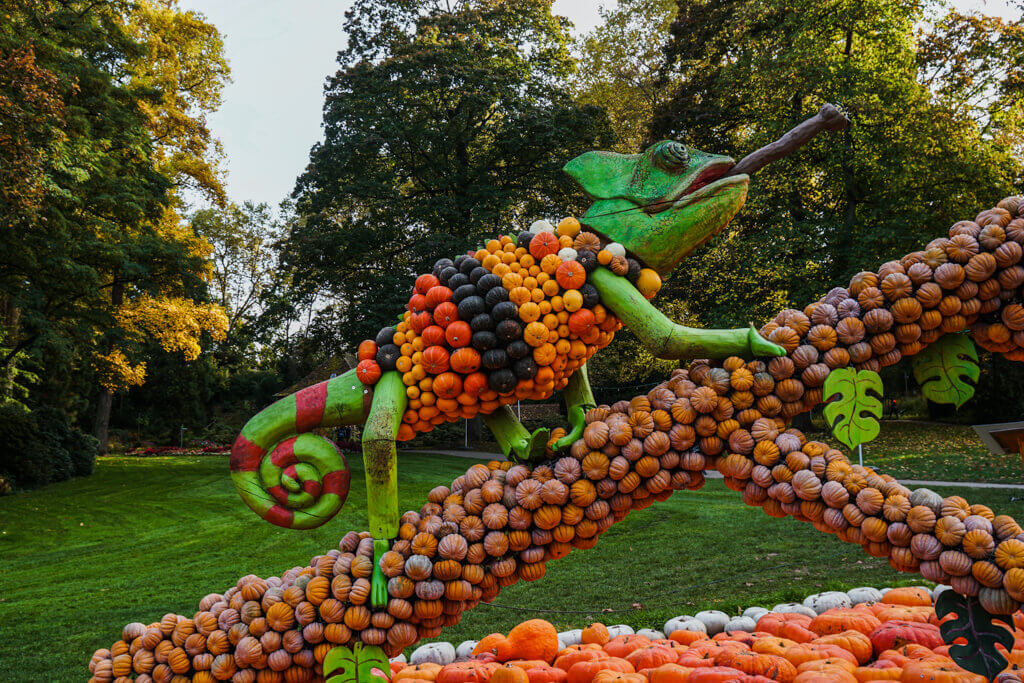 Rund 450.000 Kürbisse aus über 600 Sorten der bunten Herbstfrüchte werden dafür in Szene gesetzt – unglaublich!